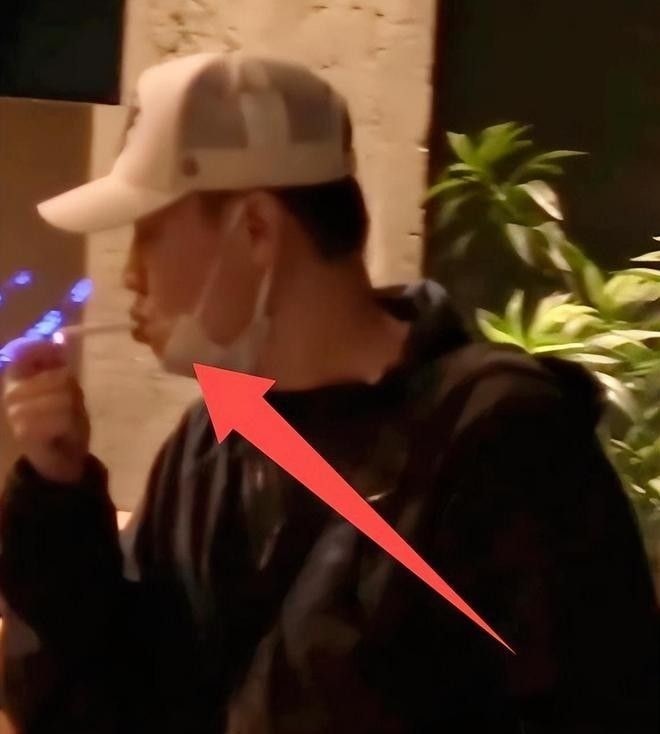 值得注意的是,尽管他刻意压低帽檐遮挡面部,但仍能清晰看到他在餐厅外持续抽烟的身影。