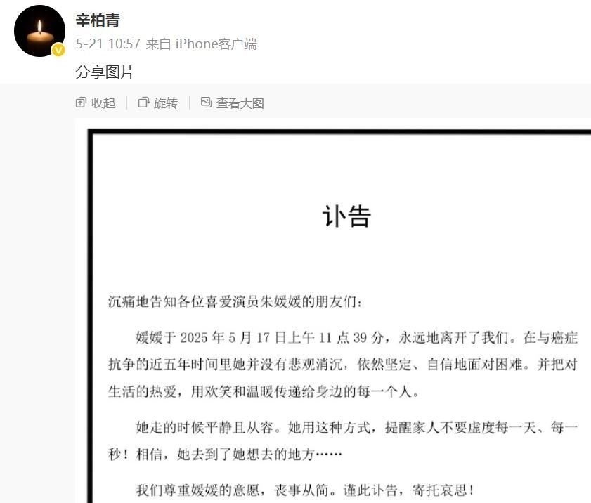中国国家话剧院及辛柏青本人先后发布讣告,证实了这一令人痛心的消息。